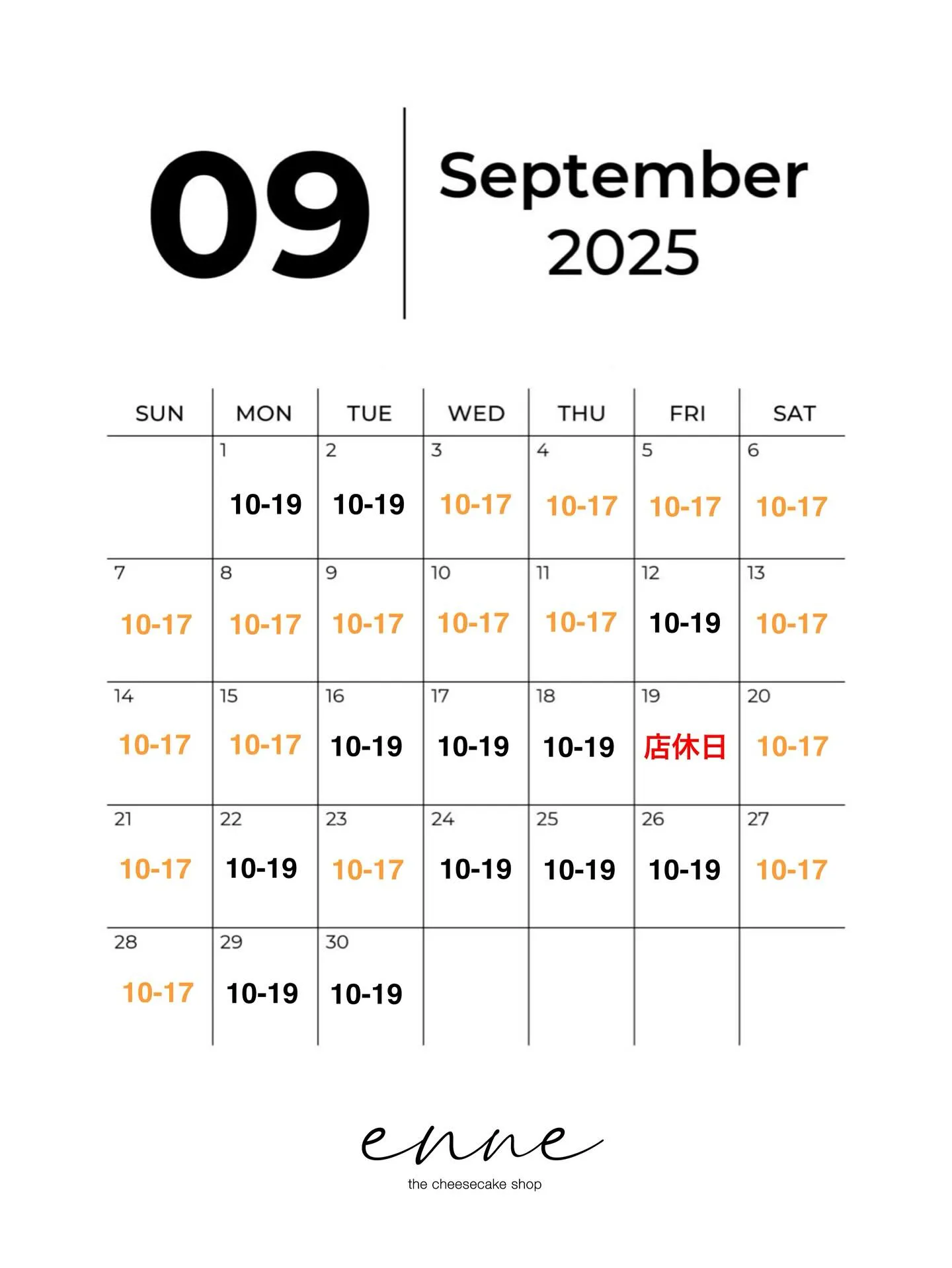 ✴︎9月営業日・営業時間のお知らせ✴︎
